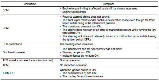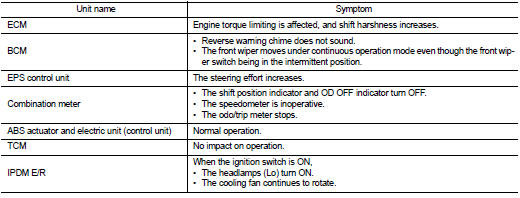 NOTE: • Each vehicle differs in symptom of each unit under fail-safe mode and CAN communication line wiring.