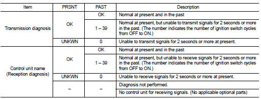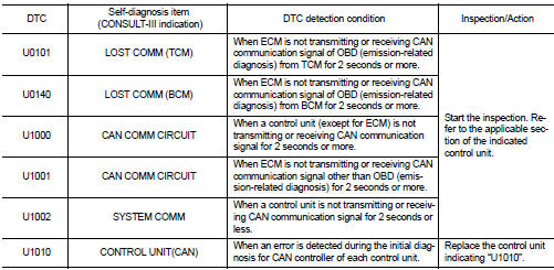 “U1000” or “U1001” is indicated on SELF-DIAG RESULTS on CONSULT-III if CAN communication signal is not transmitted or received between units for 2 seconds or more.