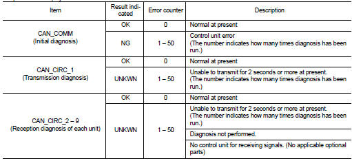 MONITOR ITEM (ON-BOARD DIAGNOSIS) NOTE: For some models, CAN communication diagnosis result is received from the vehicle monitor.
