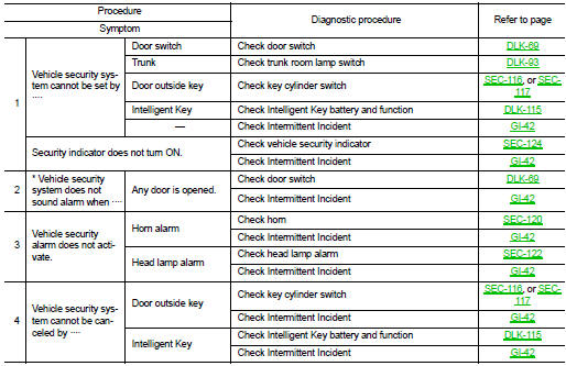 Nissan Altima (L32) 2007-2012 Service Manual: Vehicle security system symptoms