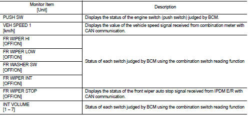 Nissan Altima (L32) 2007-2012 Service Manual ≻ Body control system bcm ≻ Function diagnosis ≻ Diagnosis system (BCM) ≻ Wiper